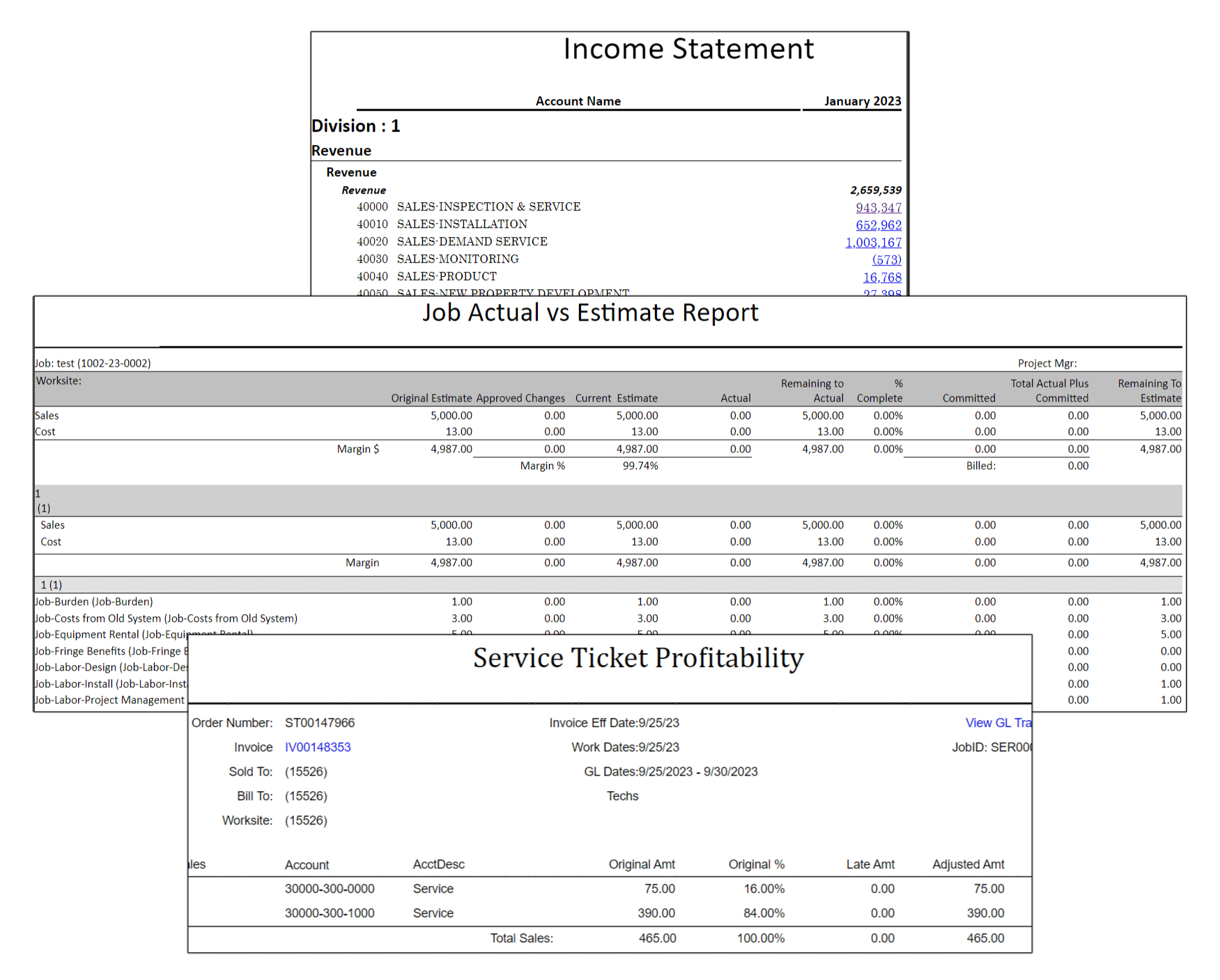 Drill down to transaction-level details directly from the income statement. Review profit and loss reports as an accountability tool to keep jobs on track.