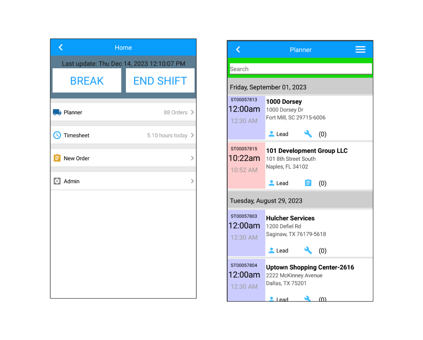Techs see dispatched tickets and changes instantly so they can stay on top of their schedule.
