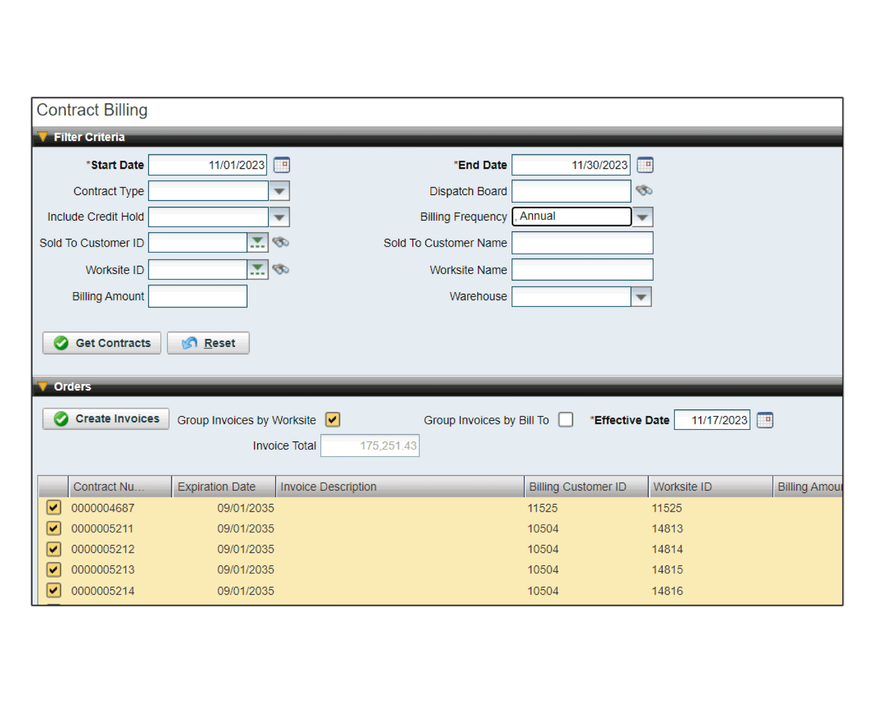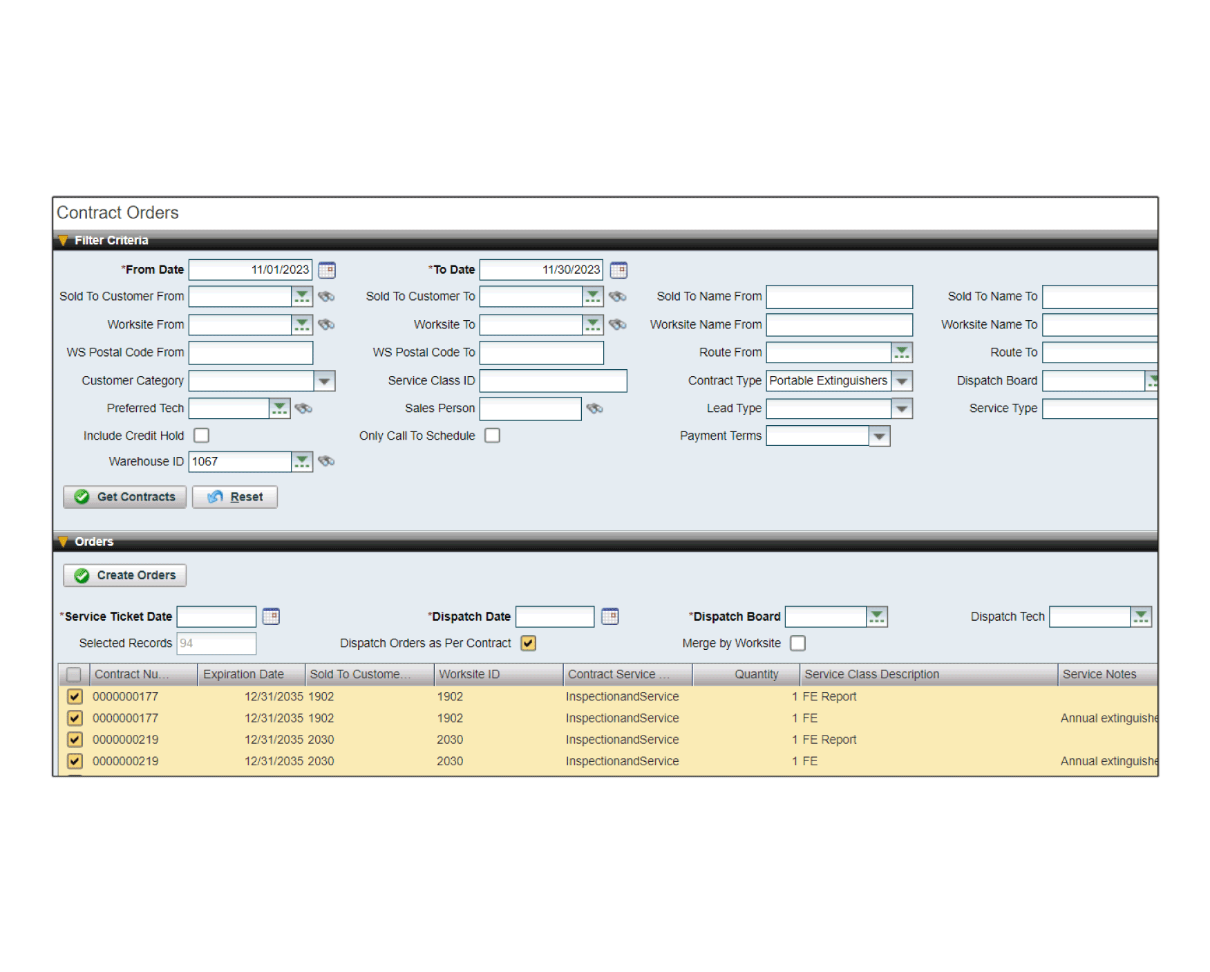 Automatically generate inspection work orders by categories such as month, preferred tech, inspection type, zip code, or branch.