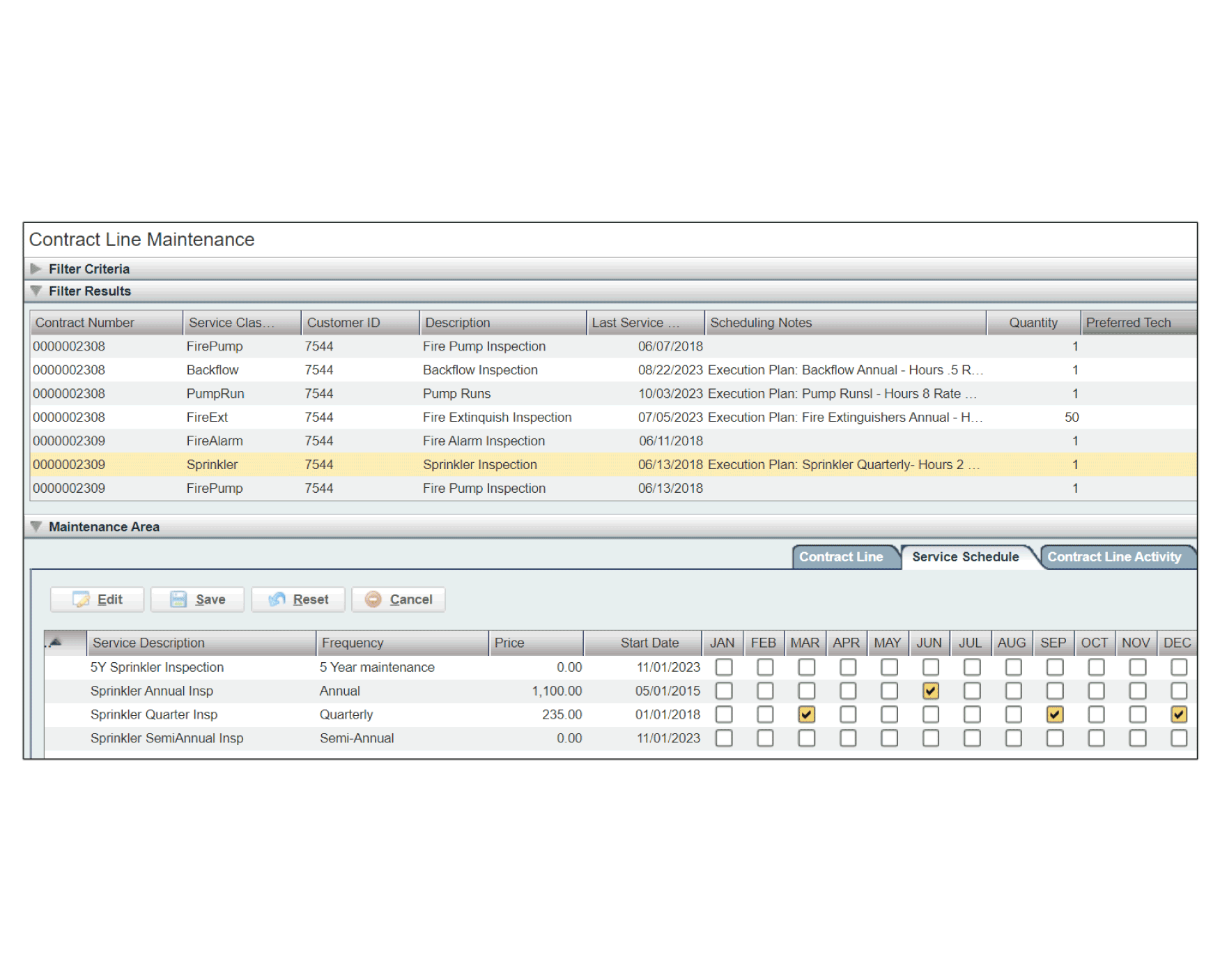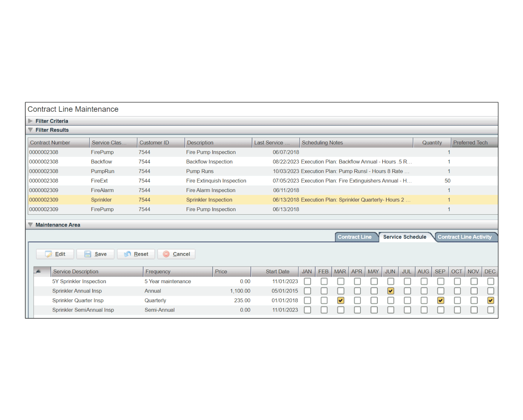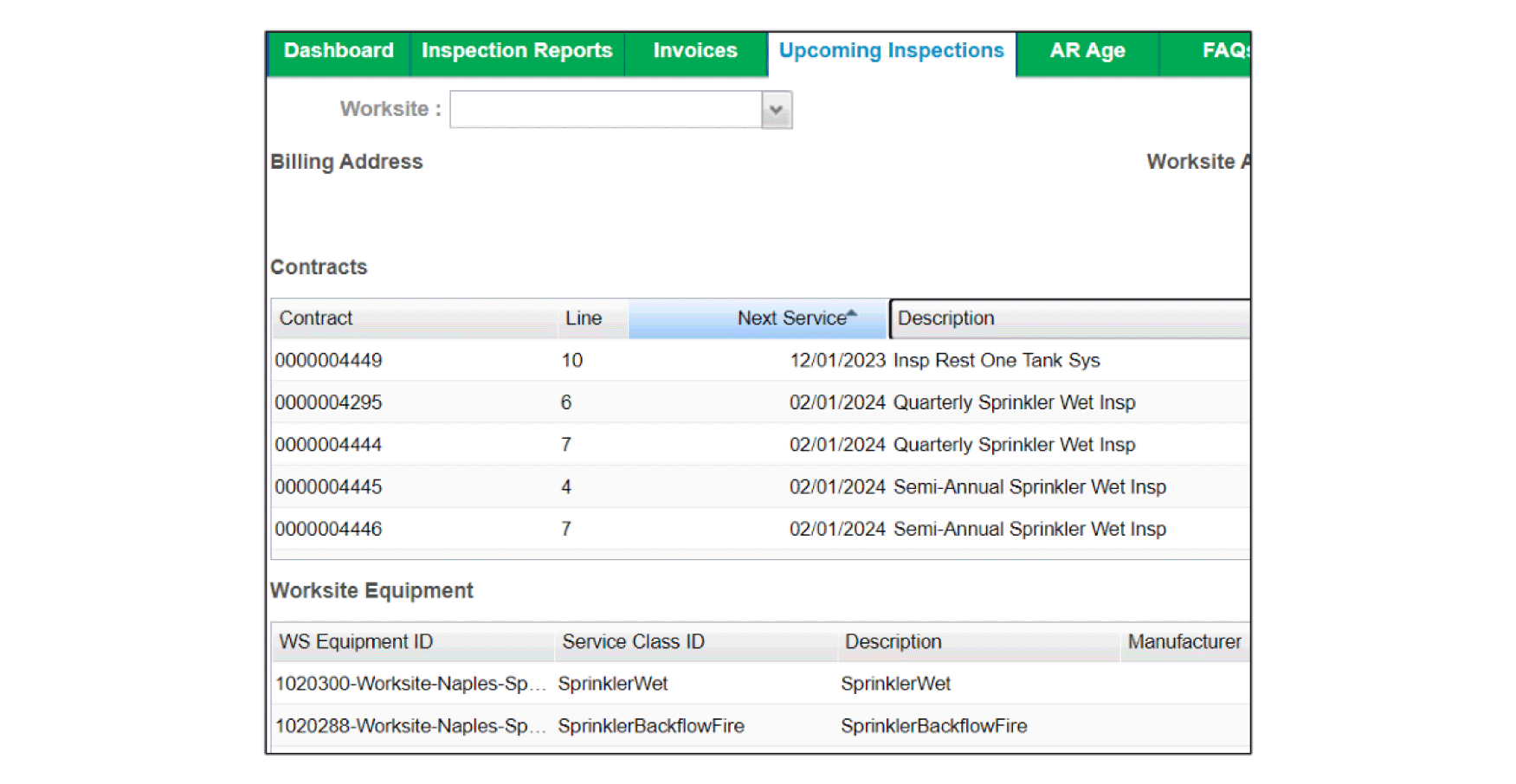 Inspections Workflow: Set up as many inspection line types as you need with pricing, frequency, and schedule details.