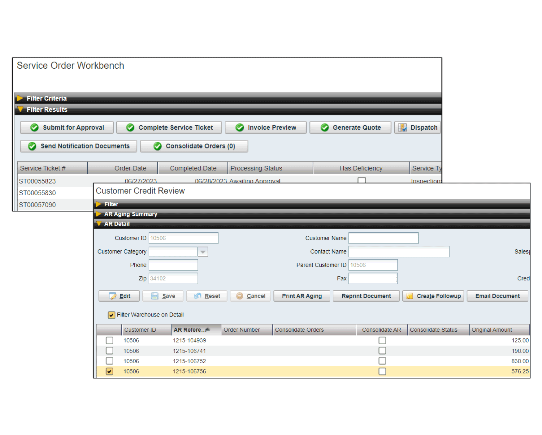 Use one screen to print AR aging, update billing contact info, add collections notes, and send invoices and statements.